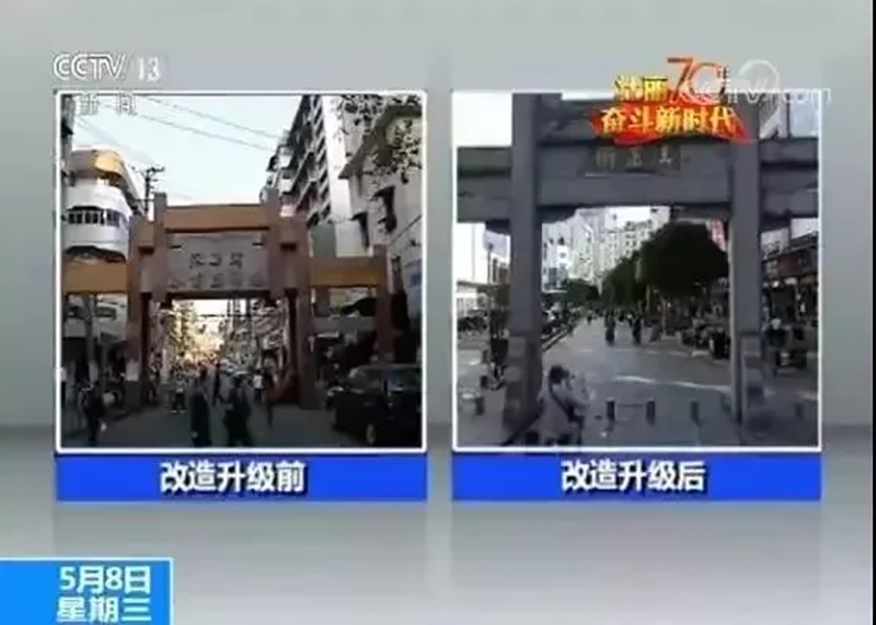 5月8日上午,中央电视台第一频道和新闻频道《朝闻天下》“壮丽70年、奋斗新时代”栏目,同步播出百年汉正街“破茧成蝶”专题信息,用时8分22秒讲述全国闻名的“天下第一街”,在市场经济的大潮中,经历阵痛和没落后“涅槃重生”的好故事。