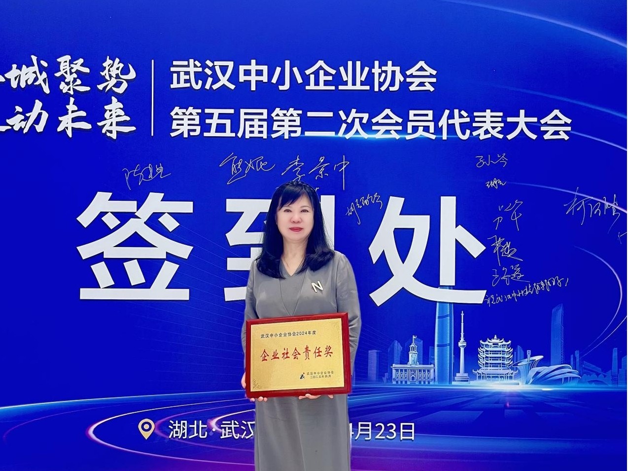 在此次盛会中,金东方实业(武汉)集团股份有限公司(以下简称“金东方”)脱颖而出,荣获“2024年度企业社会责任奖”。金东方董事长卢华女士受邀参加了本次大会,并亲自上台领取了这一殊荣。