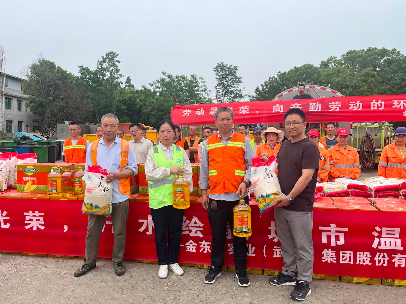 2025年4月30日,“五一”国际劳动节到来之际,金东方实业(武汉)集团股份有限公司(以下简称“金东方集团”)与浠水县城市管理执法局携手开展了一场温馨的慰问活动,向浠水县一线环卫工人致以节日的问候,并捐赠了丰富的过节物资,以实际行动表达对“城市美容师”的深切关怀和崇高敬意。